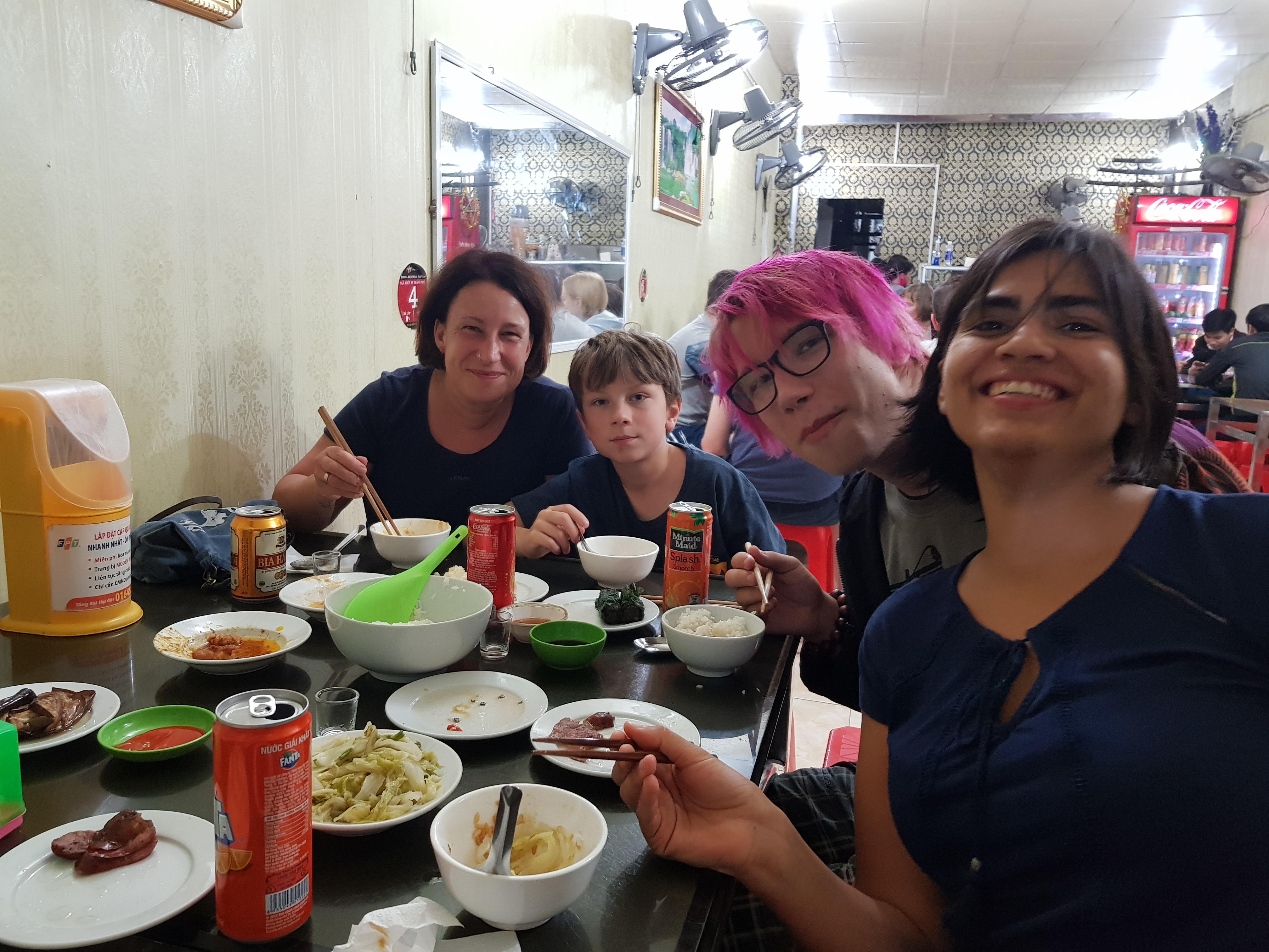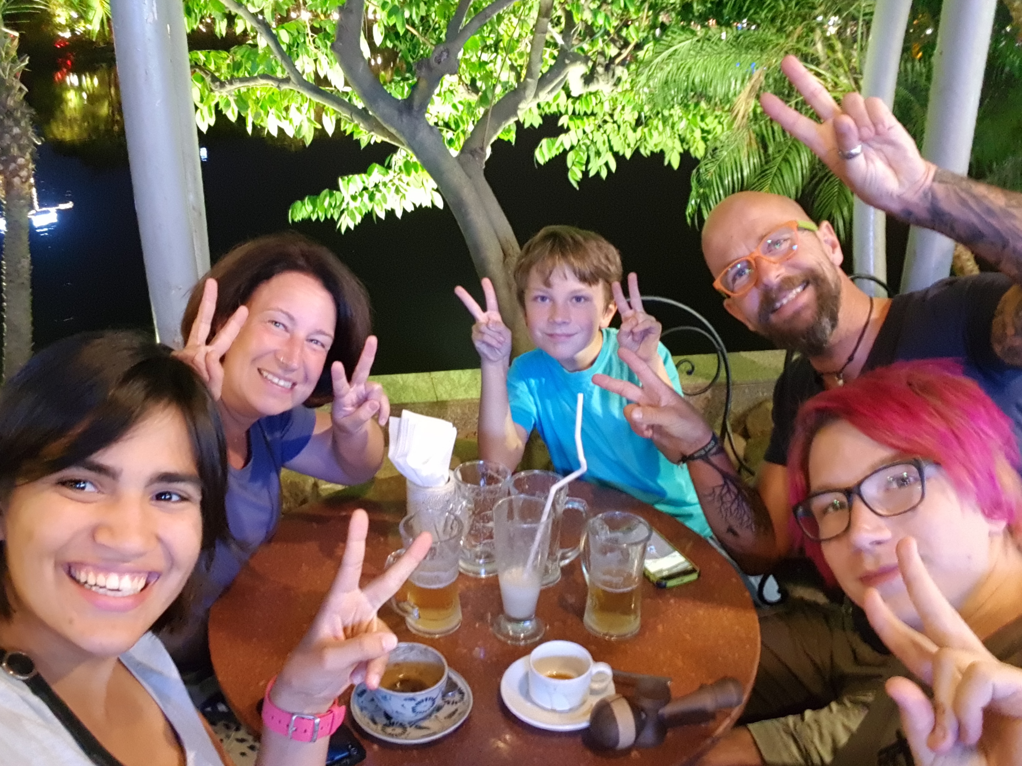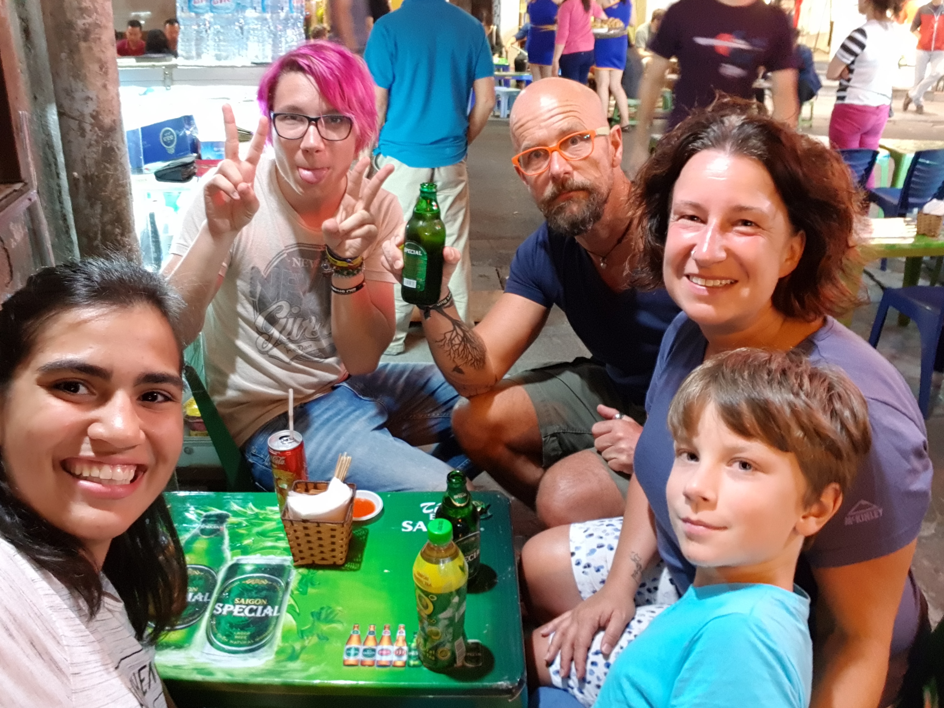 Natürlich geben wir ihm noch Geld für seine tollen Projekte mit behinderten Kindern. Wer das von euch auch machen möchte, sagt mir Bescheid. Wir haben dort alles gesehen, Jürgen kennengelernt und wissen, dass komplett jede Spende dahin geht, wo man sie hinhaben möchte. Auch an das Affenzentrum. Er behält -im Gegensatz zu den meisten Organisationen- nichts für die Verwaltung ein, sondern gibt es zu 100% weiter. Wir haben gesehen, wie z.B. die Familie aus dem Messerdorf Schulgeld für die große Tochter bekommen hat und die Familie mit den drei behinderten Kindern Geld von ihm für Medikamente bekam. Im Gegenzug gaben sie ihm Belege von der Apotheke. Es geht also alles mit rechten Dingen zu. Wir genießen die letzten Stunden in Vietnam mit chillen