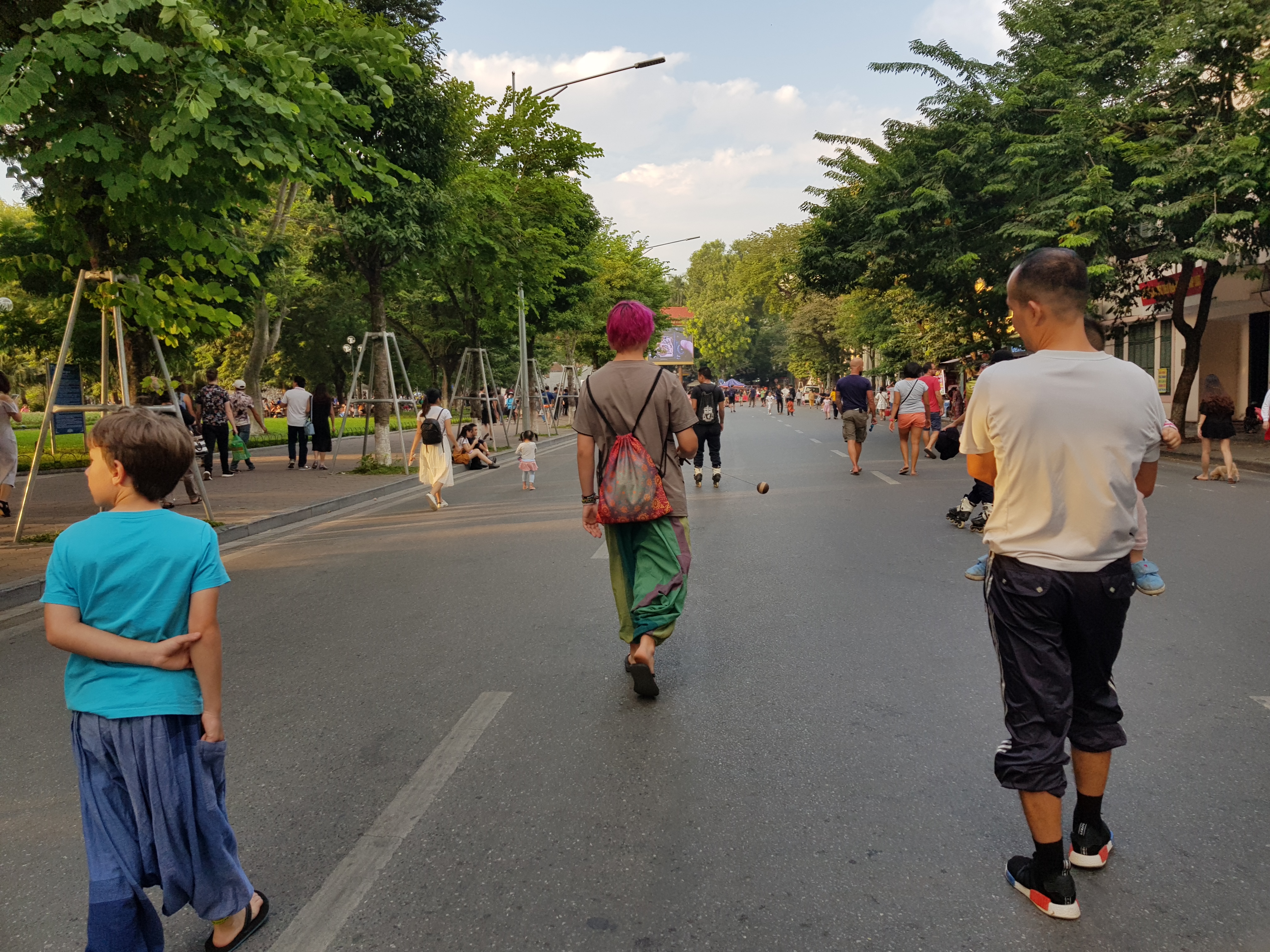 Danach schlendern wir durch Hanoi, am See entlang, alles ist für Autos gesperrt. Es ist echt richtig schön. Die Kinder mieten sich Io Hawks und pesen damit rum.