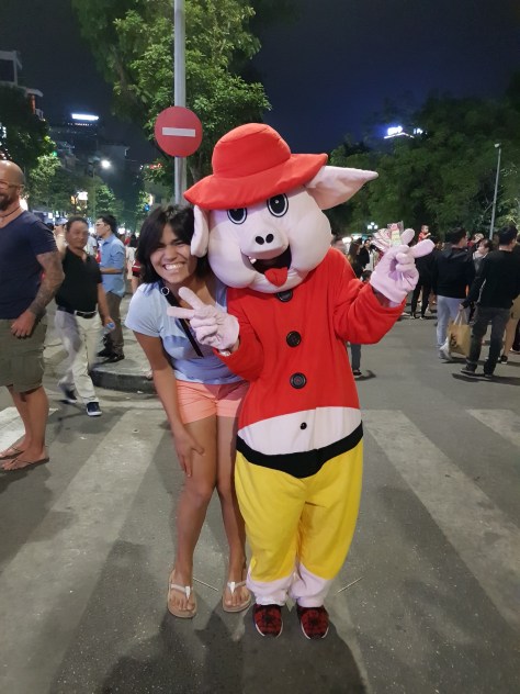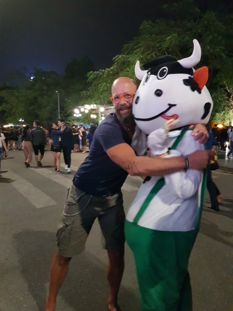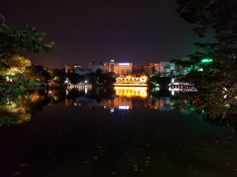Da es immernoch angenehm warm draußen ist und auch noch immer Volksfeststimmung herrscht, bleiben wir hier und genießen den Abend. Wir haben ja gelernt, dass unsere Empfangsdame Hanoi etwas überdramatisiert hat und wir tatsächlich heil und komplett zurück finden.
