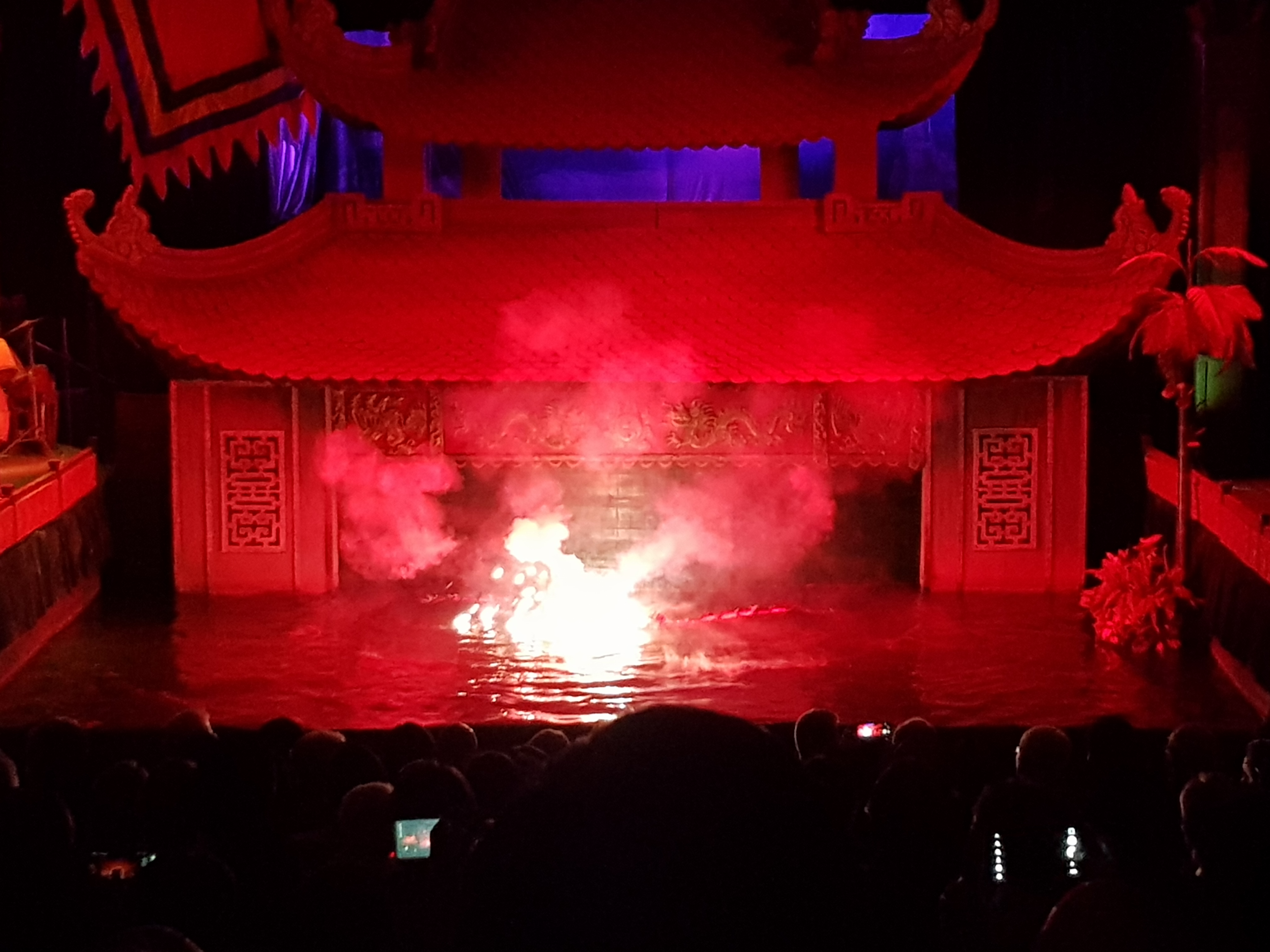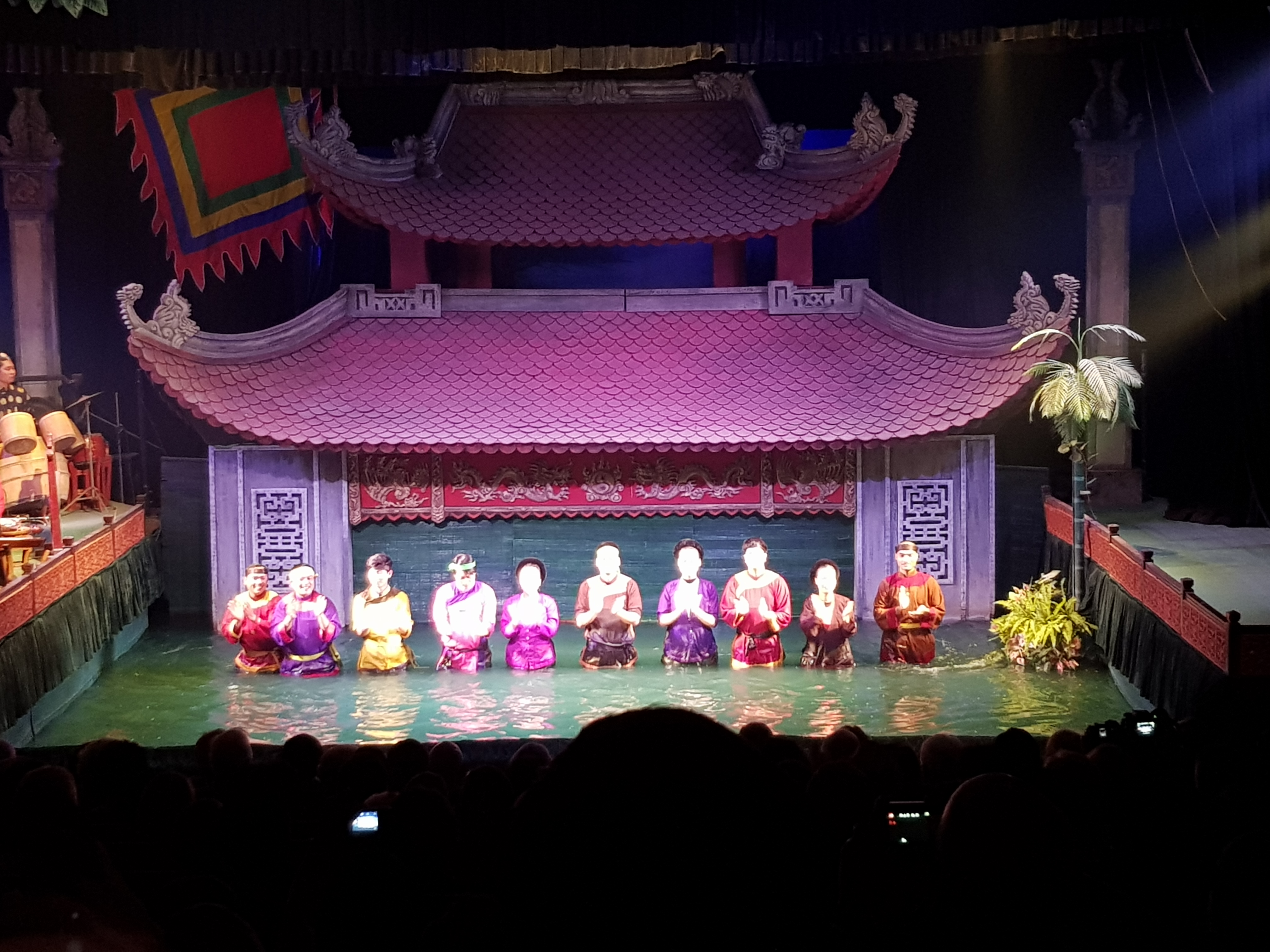 Für abends haben wir Tickets für das Wasserpuppentheater besorgt. Das war auch ein schönes Erlebnis, was wir so von zu Hause nicht kennen. Obwohl alles auf vietnamesisch gesprochen wurde, haben wir fast alles verstanden.