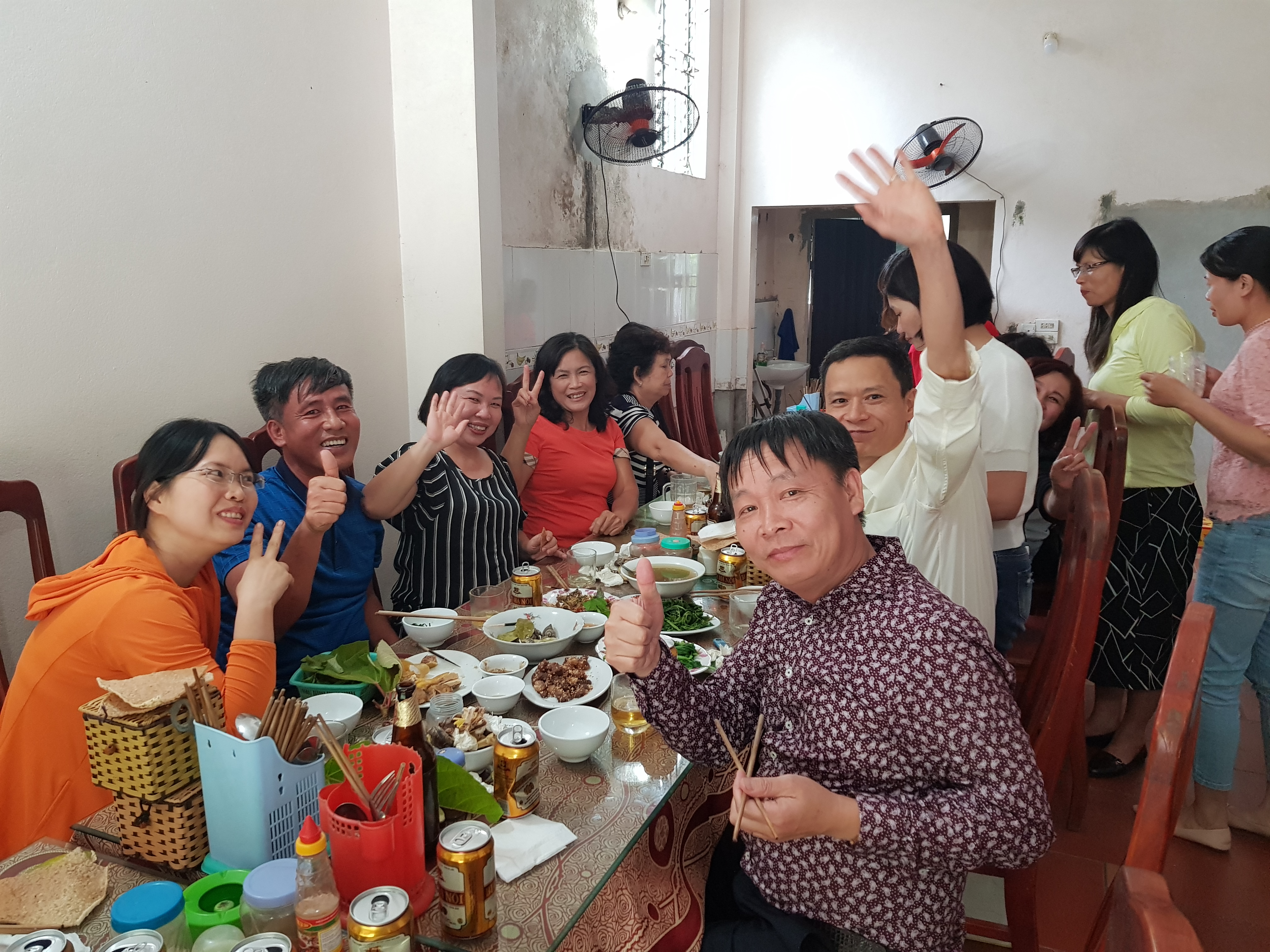 Das Homestay ist einfach, aber sauber und gemütlich. Die Familie ist sehr nett. Auch sie kennt Jürgen schon lange. Wir essen vorzüglich einfach und lecker. Danach kommt das Highlight des Tages: Eine Tanzgruppe der dortigen Minderheiten singt und tanzt für Mike….und mit Mike…und daher muss ich auch mit ran…es ist lustig, wir haben echt Spaß.