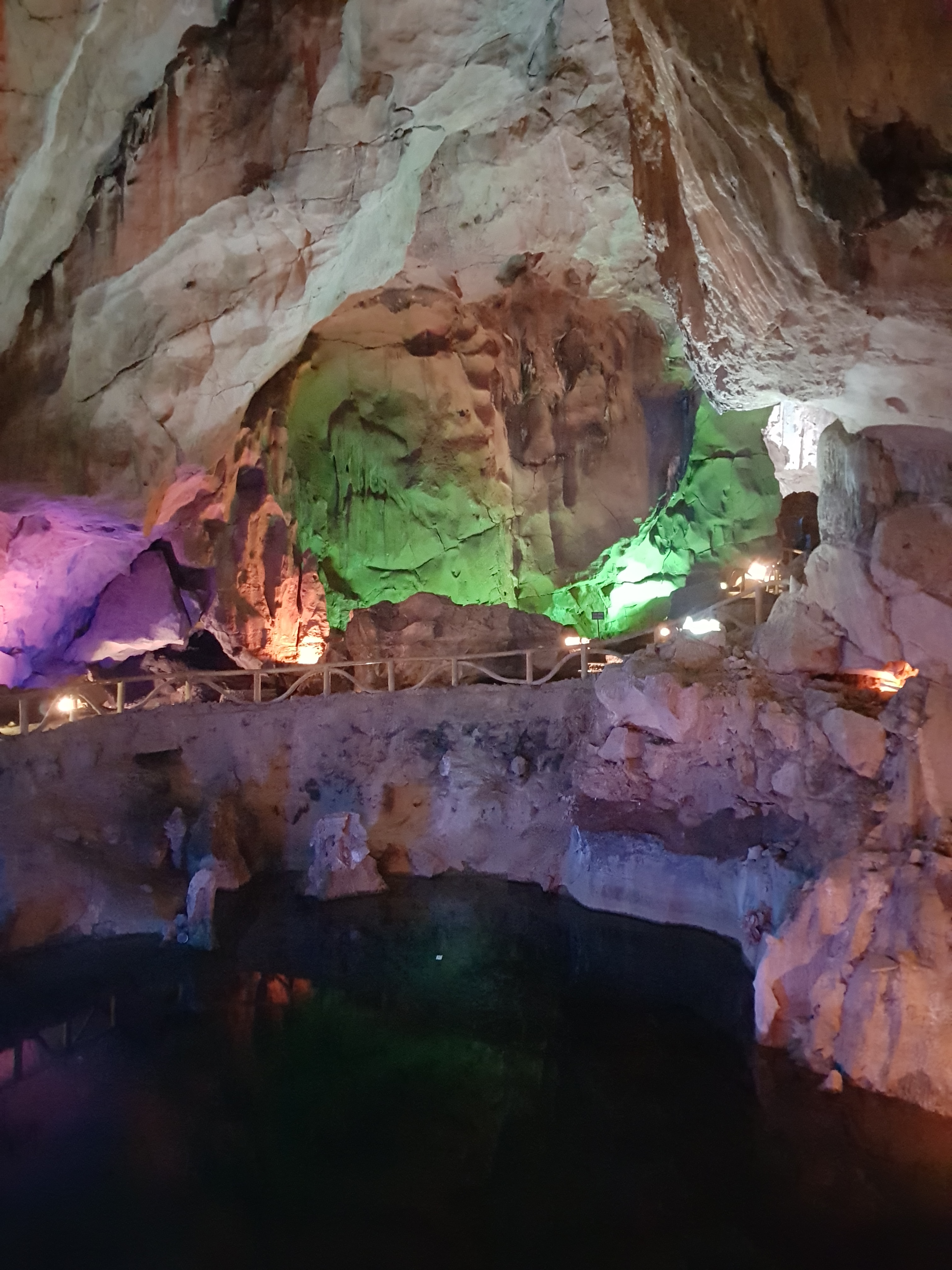 Wir erreichen den Hafen und steigen ins Boot. Es ist eine wunderschöne Fahrt auf dem Fluß. Am Ufer kann man noch erkennen, wie sehr das Hochwasser vor drei Wochen hier gewütet hat. Das Ufer ist teilweise komplett abgerissen. Wir steigen in einer Höhle aus und laufen durch.