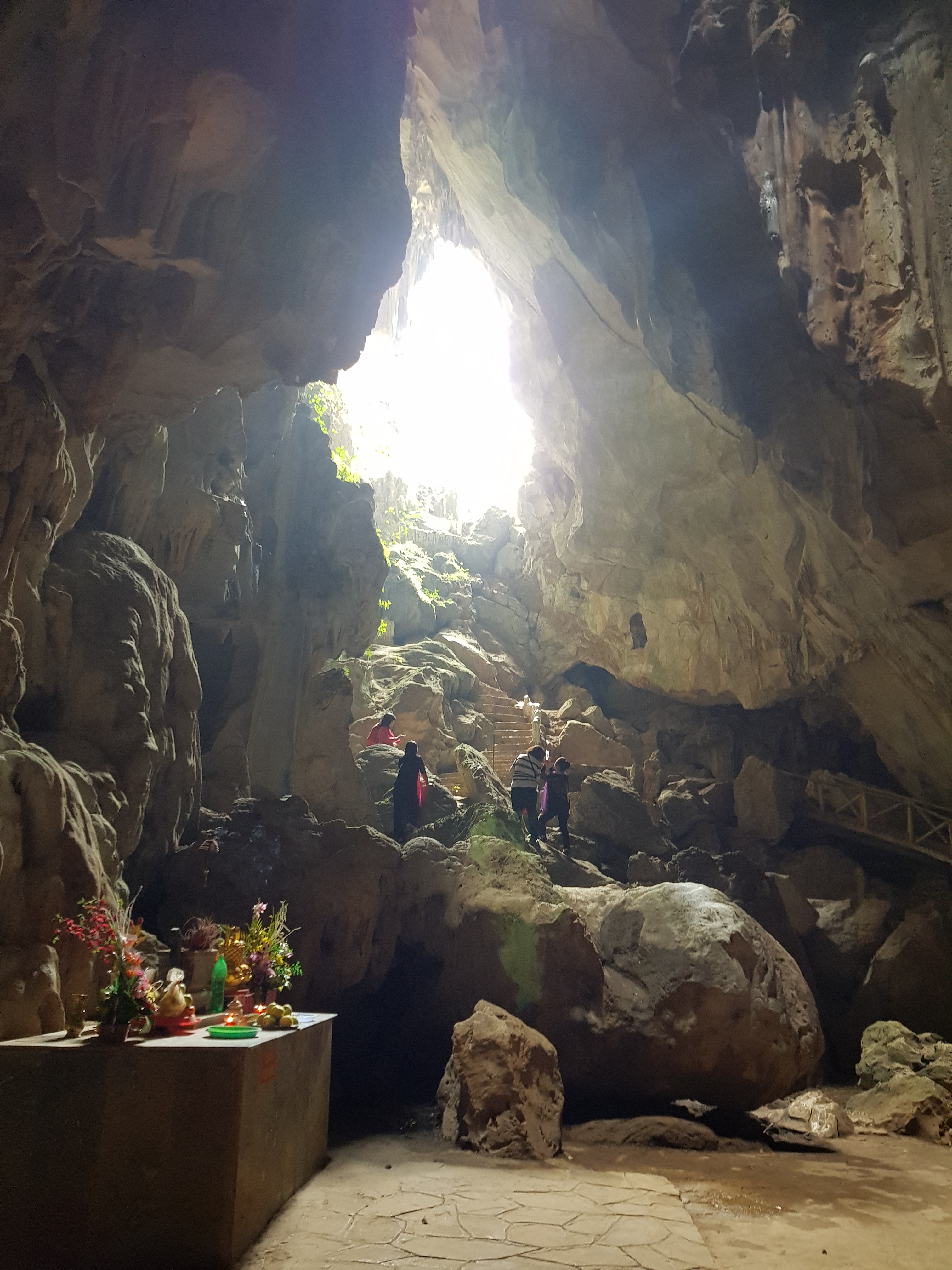 Wir schlafen gut und düsen morgens um 8 Uhr schon wieder los, schließlich haben wir viel vor. Heutiges Ziel ist Lang Son, dort besuchen wir eine sehr schöne Höhle und dürfen im Markt Kekse und Tee probieren. Für jede Kekspackung, die wir kaufen, bekommen wir eine Packung Tee dazu oder auch zwei oder drei. Auf jeden Fall haben wir jetzt genug Tee. Wir kaufen noch ein paar Souvenirs für wirklich wenig Geld und fahren weiter.
