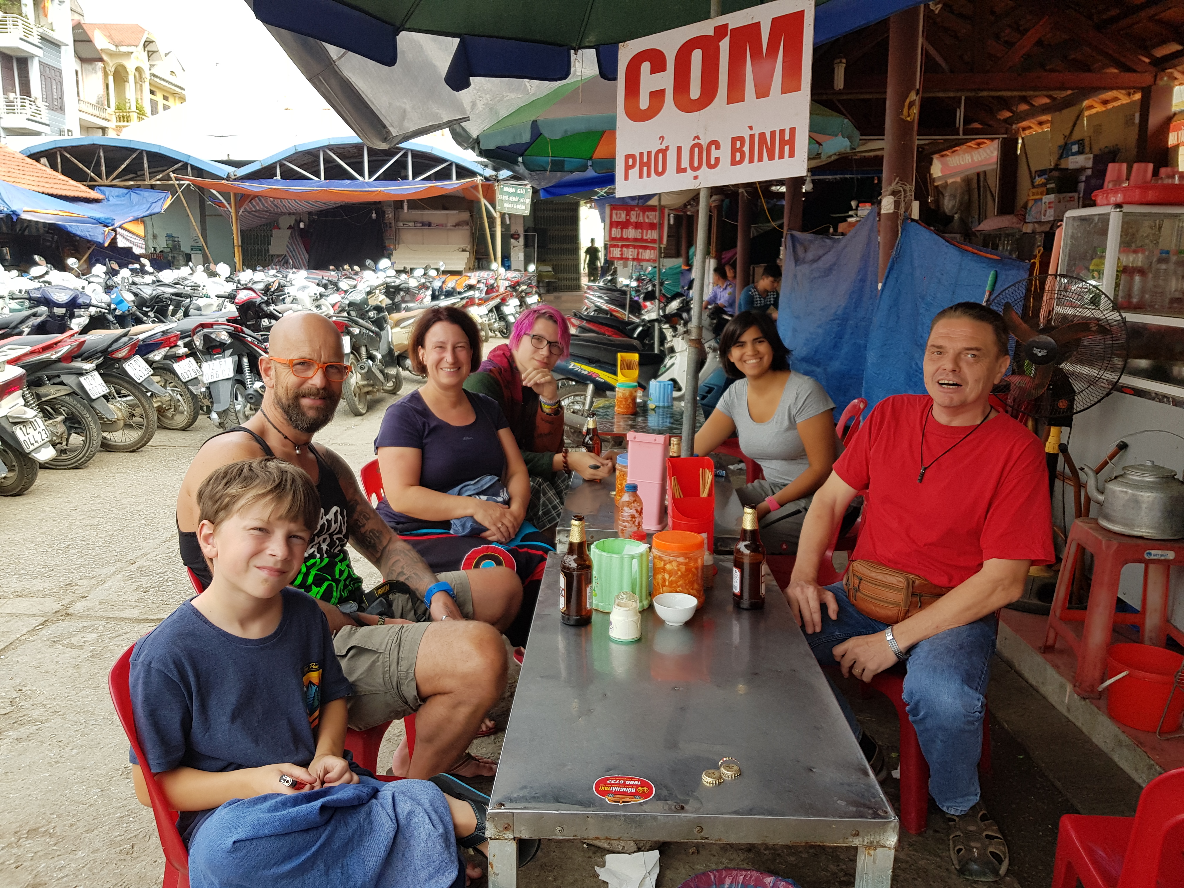 Frühstück ist lecker, zu meiner Freude gibt es Nudelsuppe! Aber immerhin ab jetzt vietnamesische und keine japanische mehr. Abholen klappt auch mit einem netten Schild: