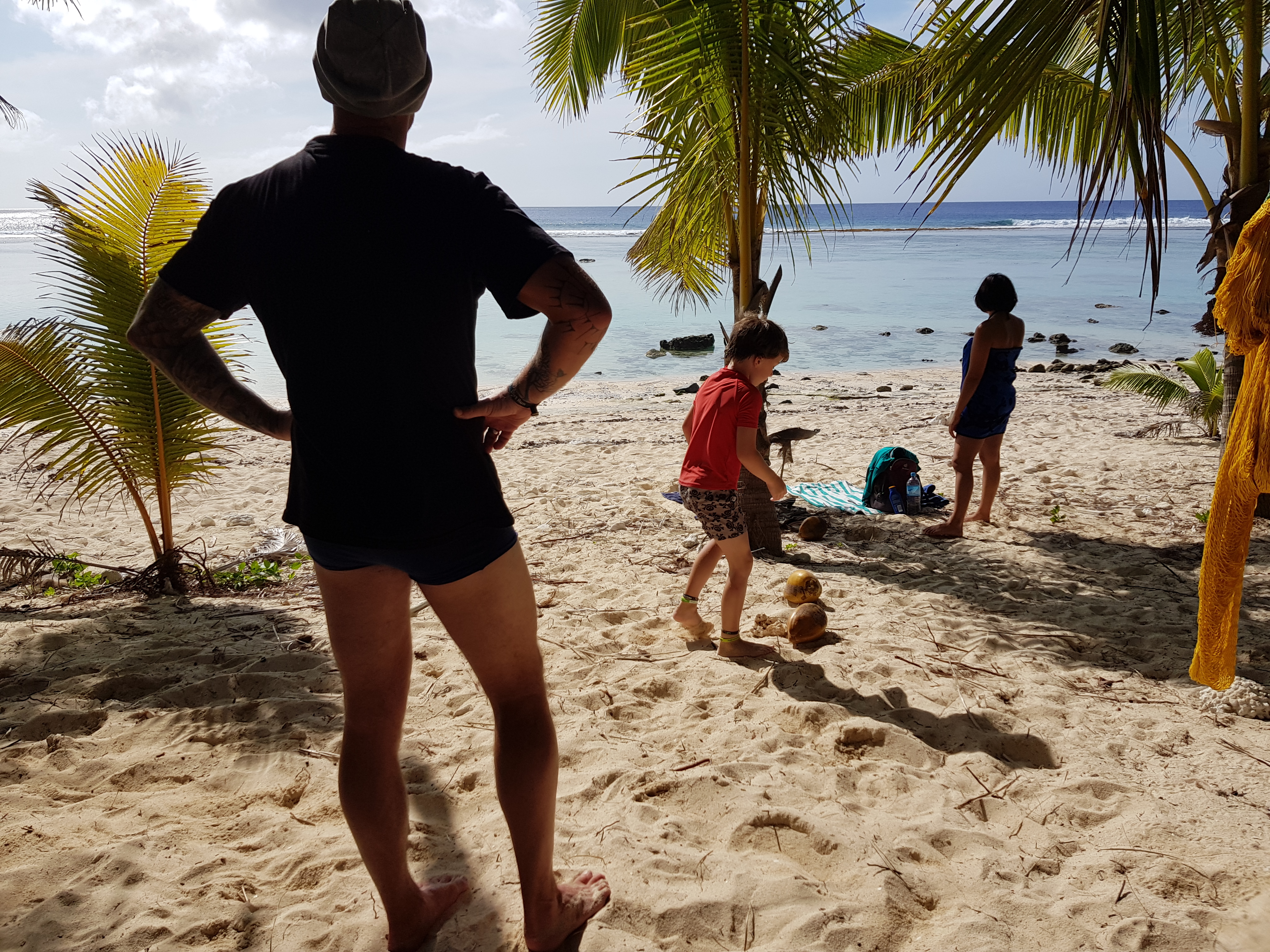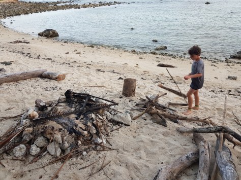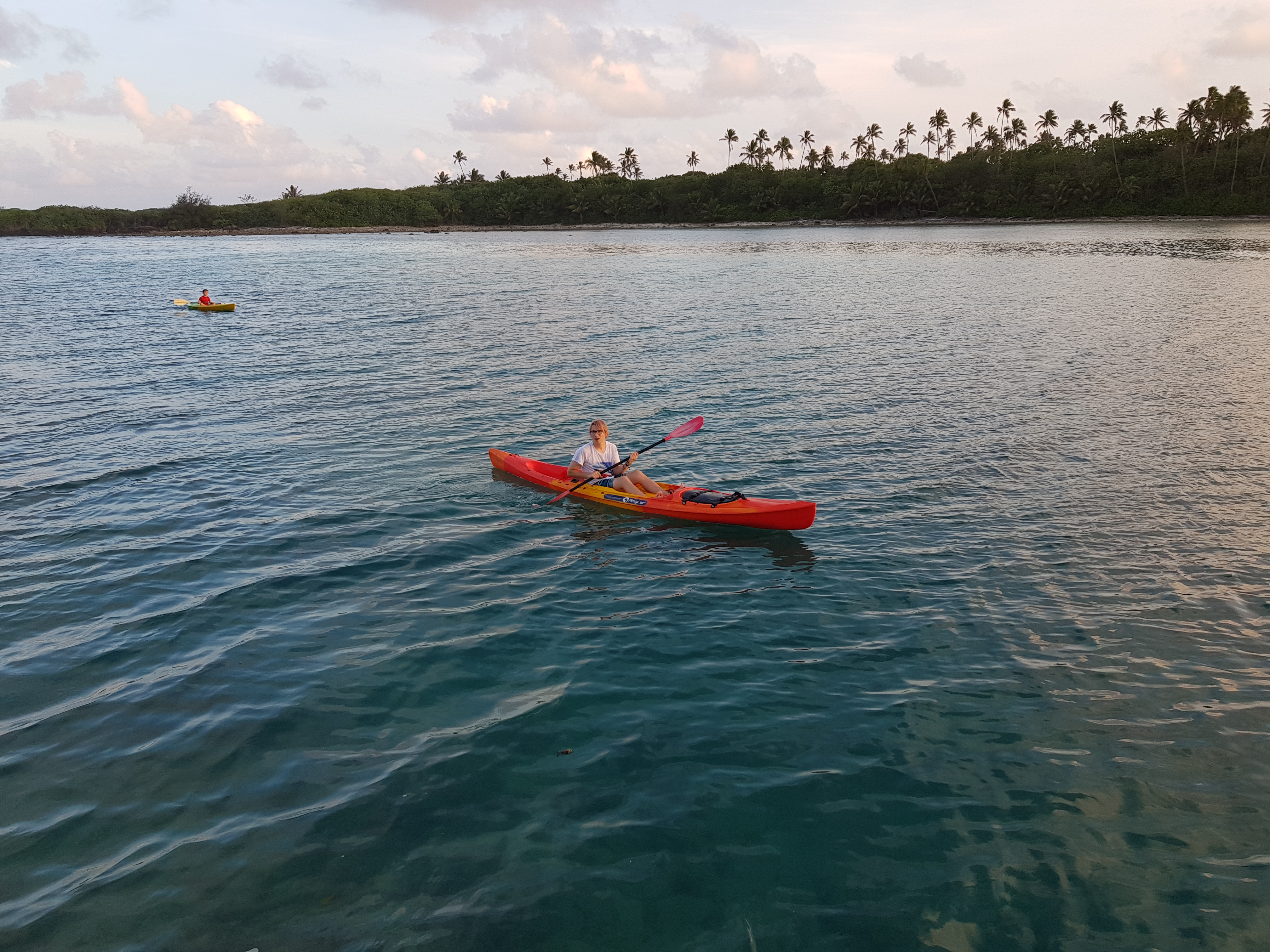 Bei Bela machen sich winzige Anzeichen von Reise-Burnout bemerkbar. Wir müssen das beobachten. Er möchte nicht mit an den Strand, lieber auf dem Boot bleiben. Das geht natürlich nicht, denn das Boot fährt in den Hafen zurück, bringt die Eine-Nacht-Passagiere zurück und neue Gäste mit. Eine gute Lösung (wie wir finden), wir haben uns schon gefragt, wie das funktionieren soll, wenn wir zwei Nächte bleiben. Wir wollten ja nicht mit zum Hafen, um diese Transporte zu erledigen. So werden wir nach dem Frühstück einfach in ein Dayboat verladen. Das hat auch alles, wie das große, nur keine Schlafkabinen. Es ist schön. Wir sind 11 lustige Leute, alles passt gut. Wir fahren heute an einen kleinen Strand zum Schwimmen und Kayaken. Das Wasser ist super. Herrlich erfrischend. Weil wir schon so früh aufgestanden sind, haben wir um 10 Uhr schon total viel erlebt. Wir paddeln mit den Kayaks an einen Strand und baden dort. Bela ist wieder fit!