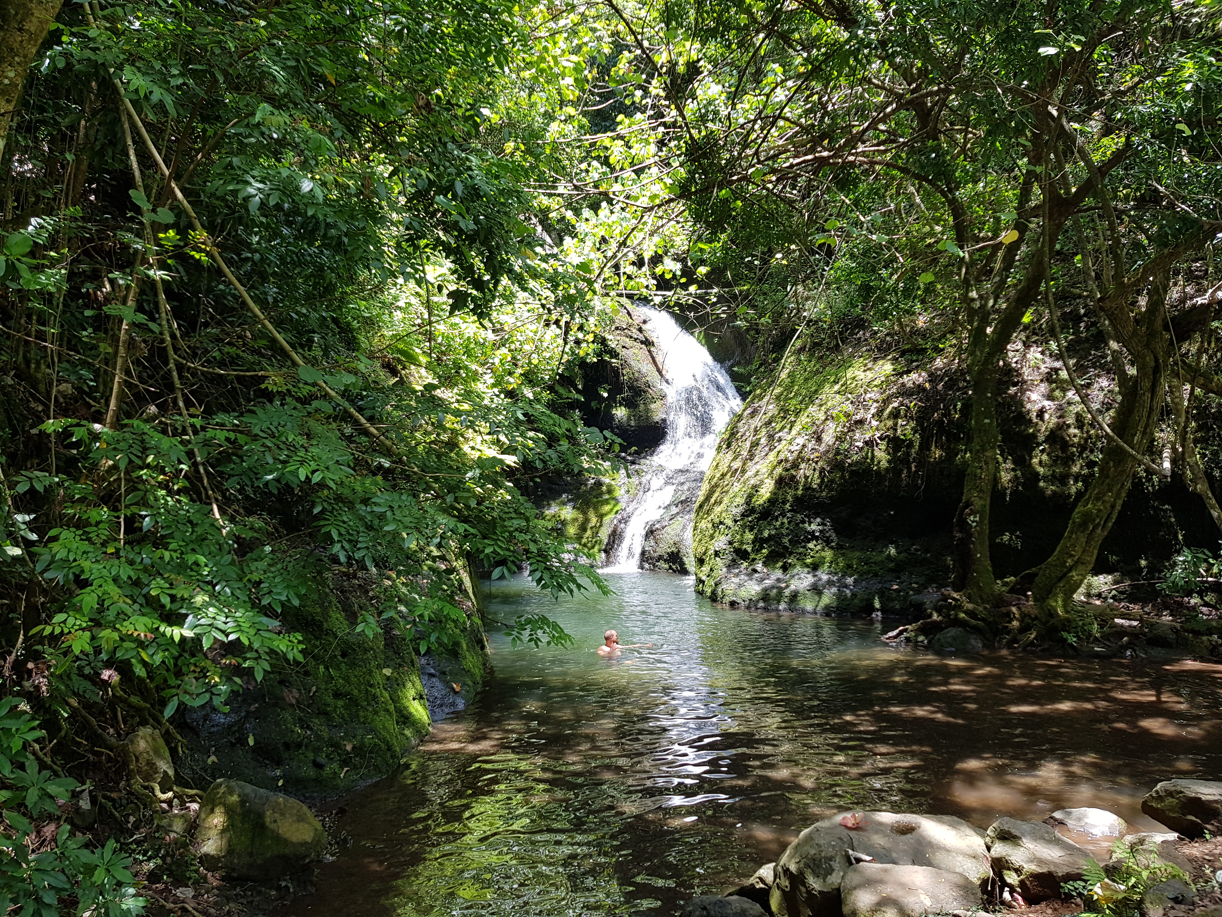 Später legen wir an. Wir sehen eine Schlange fliehen und werden erneut in unserem Wissen bestätigt, dass Schlangen keine Lust haben auf Begegnungen mit uns. Wir gehen ein bisschen spazieren und sehen Wasserfälle.