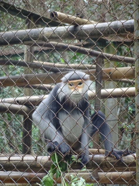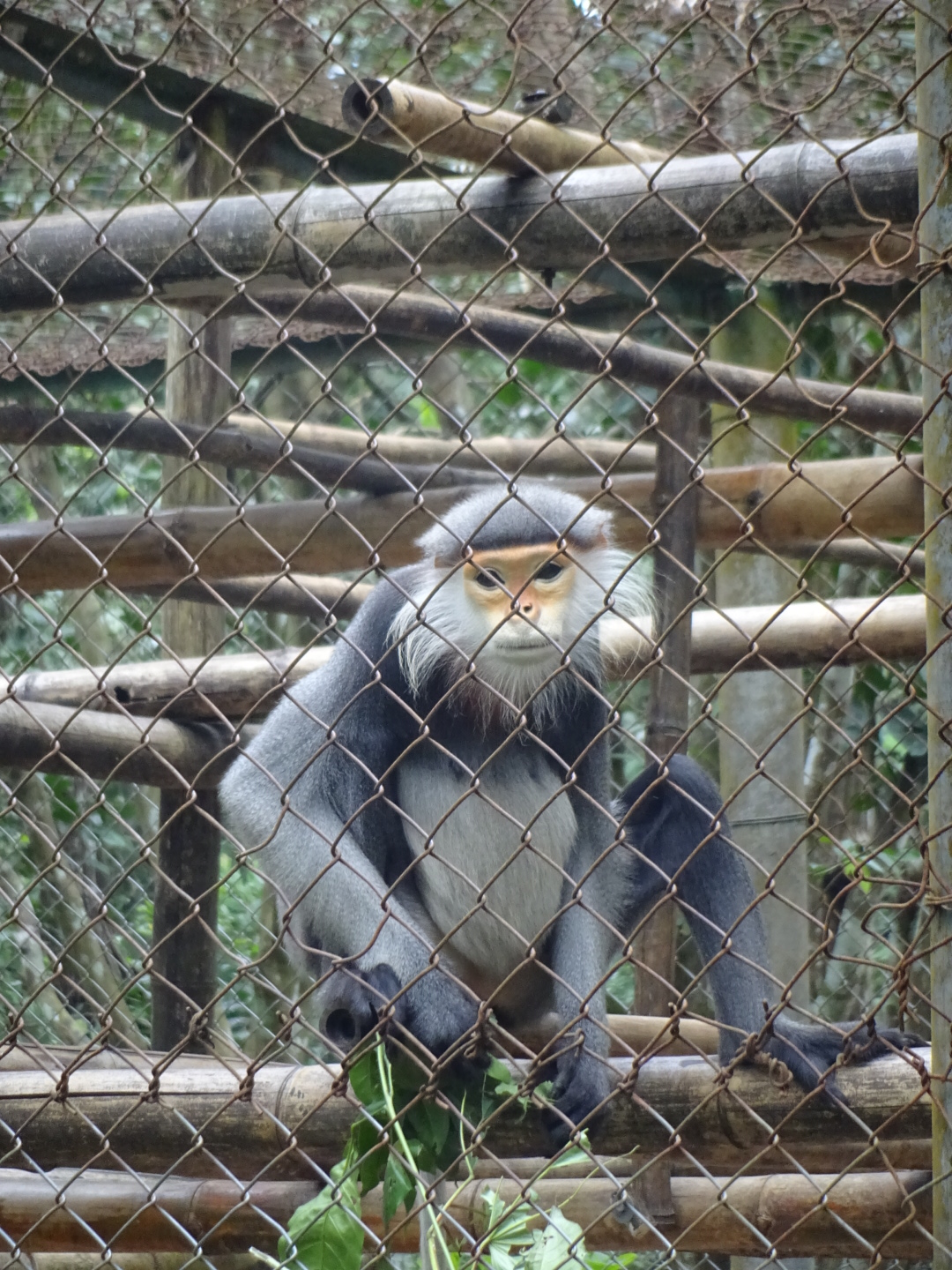 Danach sind wir nach Cuc Phuong gefahren, um ein Affenrettungszentrum zu besuchen. Dort arbeitet Elke Schwiertz aus dem Zoo in Leipzig seit vielen Jahren. Sie hat schon ein paar Affenarten vor dem Aussterben gerettet. Es werden dort Affen gemeldet, die illegal im Cafe oder sonstwo gehalten werden. Jegliche Art von Besitz von Wildtieren ist in Vietnam untersagt und wird geahndet. Sie düst dann los und sammelt sie ein. Sie lebt dafür. Die Führung von Elke durch das Zentrum war dementsprechend interessant. Wir haben Affen gesehen, von deren Existenz wir gar nicht wussten. Es leben dort 180 Affen und Elke kennt sie alle…mit Namen! Es ist eine wichtige Arbeit, die dort gemacht wird. Wir waren begeistert.