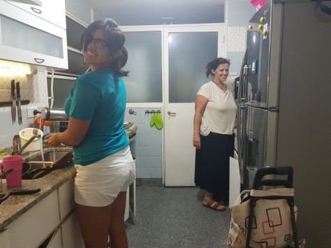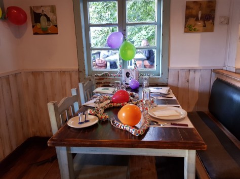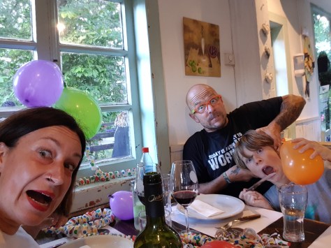 Wir feiern noch ein bisschen und weil die Stimmng so gut ist und es so lecker ist und Franck und Irina jetzt weg sind und und und….die Mädels aus Amsterdam holen sie: die nächste Flasche!