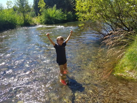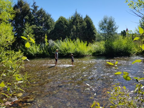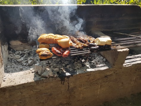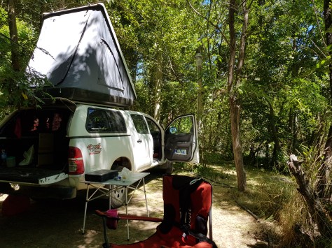 Es gibt ein Toiletten/Duschhaus. Dusche heißt hier: Rohr aus der Wand, kaltes Wasser kommt raus. Ich inspiziere sie gespannt und bin überrascht. Toiletten und auch Duschen sind sauber. Es gibt ausreichend Papier. Die Mülleimer quillen nicht über. Hier sieht es viel besser aus, als auf so manchen Campingplätzen, die wir in der letzten Zeit besucht haben. Es gibt auch eine „Lounge“, dort ist es lustig.