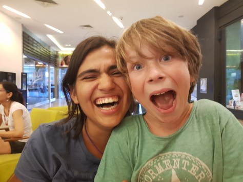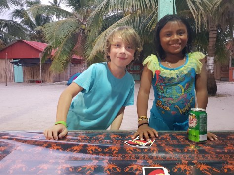 Bela und Yuani malen solange, bis ich mit UNO Karten erscheine. Dann leuchten ihre Augen und sie schmeißt die Stifte weg.
