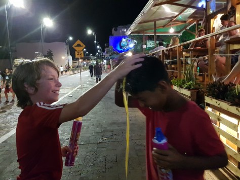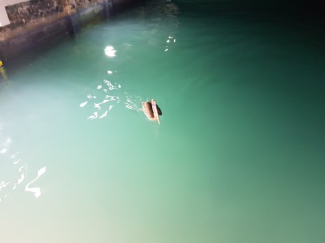 Mike verschwindet einfach irgendwann heimlich im Bett. Leider wird ihm nicht mehr einfallen, wie er dort hin gekommen ist. Ich springe noch zu den Kindern ins Wasser und bin sofort wieder nüchtern. Das ist auch gut so!! Plötzlich schreit Yuani und ich sehe ihren Sparkassen Wasserball auf dem Wasser wegtreiben. Ich schwimme hinterher und versuche ihn zu retten. Dabei bekomme ich eine fürchterliche Wunde am Oberschenkel. ich reiße mir die Haut an Korallen auf, die ich nicht gesehen habe. Es blutet recht ordentlich und ich bekomme Kuna Yala Desinfektionsmittel. Das brennt wie Hölle. Von dieser Wunde werde ich noch lange etwas haben…Der Ball wurde schließlich von Yuanis Bruder gerettet. Dinner habe ich mit Bela alleine. Noch eine lange Kartenrunde mit Yuani und den Holländerinnen und ab auf die neue Matratze (wir haben heute neue Matratzen bekommen). Mike schläft zum Glück leise und schnarcht nicht. Als er am nächsten Morgen mein Bein sieht, fragt er ganz entsetzt, ob er das war…Ja ja, das war es dann wohl mit dem Rum!