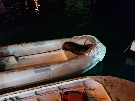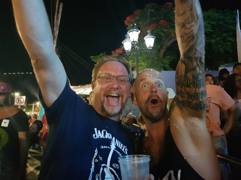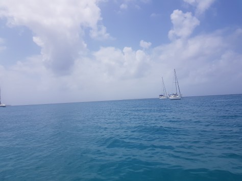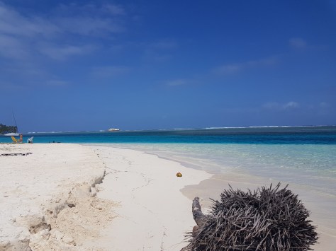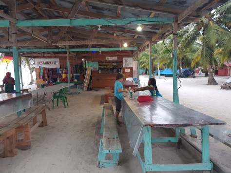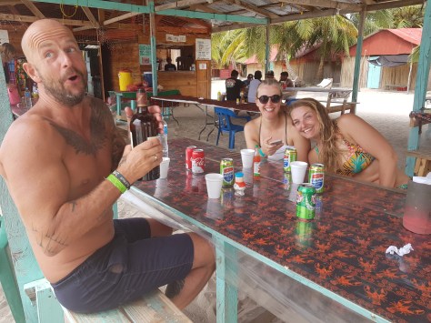 Die Crew packt aus. Inzwischen kennen wir den harten Kern der Gäste. Es gibt auch viele Tagestouristen, die sind dann abends wieder verschwunden. Das heißt, mit ihnen haben wir wenig Kontakt. Aber mit Irina und Franck – eine russich-french-connection, Julia und Svenja aus dem Sauerland, Suzann und Eva aus Amsterdam und Michael aus Toronto (an ihn kann sich Mike morgen nicht mehr erinnern, das hatte etwas mit Rum zu tun und ist ein anderes Thema) können wir es gut aushalten. Von ihnen erfahren wir auch, dass die Rumnacht jetzt und hier startet. Die Crew hat bereits drei 2 Liter Flaschen Rum auf dem Tisch, sowie Eis und Cola. Los gehts. Bis die Flaschen leer sind. Wenn es schon mal angeboten wird…üben für Cuba!