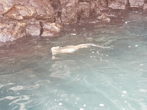 Die ist richtig lecker… Dazu gibt es Cola mit Eis und Nachos mit Dip von der Ausflugscrew. Und dann geht es weiter zumnächsten Stopp. Piscina naturales, swimming pool…naja. Mitten im Meer ist eine Sandbank und darüber ein bisschen Wasser. Ganz nett hier, aber beim Schnorcheln sieht man nichts.