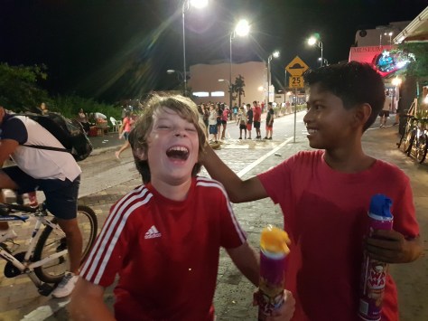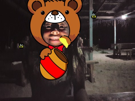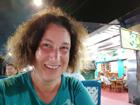 Es wird früh dunkel, die Solarbeleuchtung ist auch nicht so hell, also werden wir früh müde und sind nach ein paar Runden UNO gegen 21 Uhr verschwunden. Entgegen meiner Vorahnung, schlafe ich gut. Habe zwar etwas Probleme beim Einschlafen, aber Bela auch und deshalb drehen wir zusammen noch eine kleine Taschenlampenrunde. Der Sternenhimmel ist der Hammer. Bela macht ein paar irre Fotos vom Mond. Zum Glück hat es sich abgekühlt und da wir unsere Hütte am Meer haben, weht es immer ein bisschen. Gibt ja auch genug Ritzen, damit die kühle Luft herein kann und die Ameisen und die Krabben und was noch mehr…