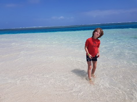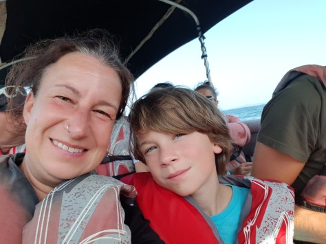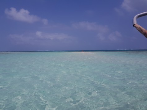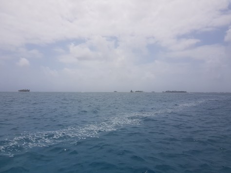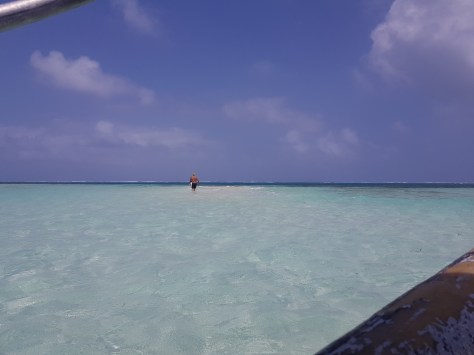 Entwarnung, wir müssen alle sitzen bleiben, nur unser local Guide holt etwas von dort. Wir fahren weiter. Die Wellen werden höher, das Wasser klarer und die Sonne kommt raus.