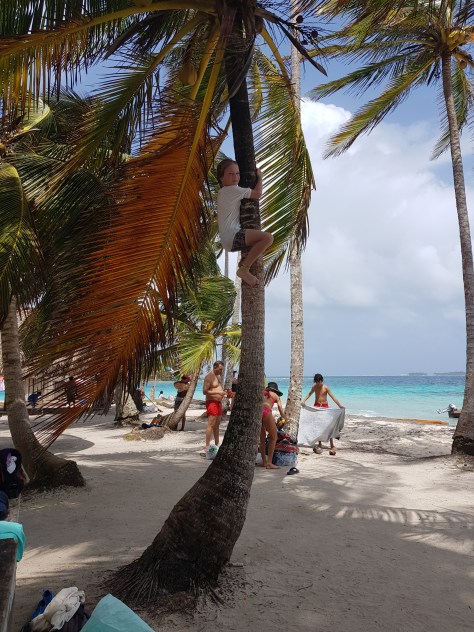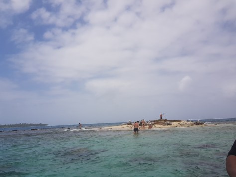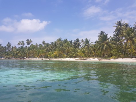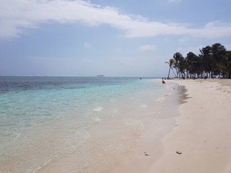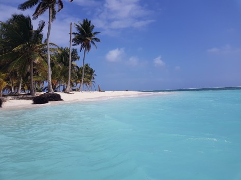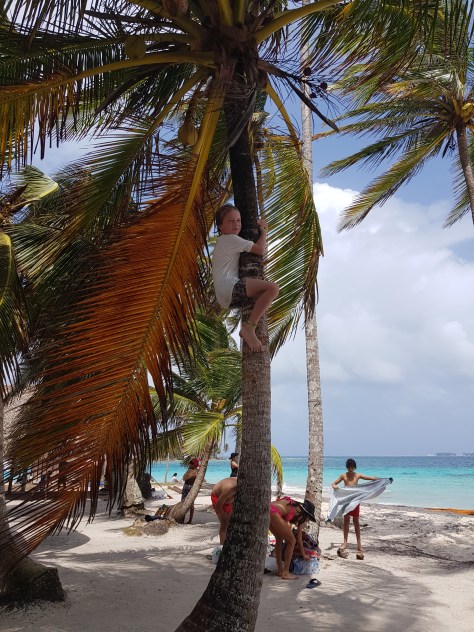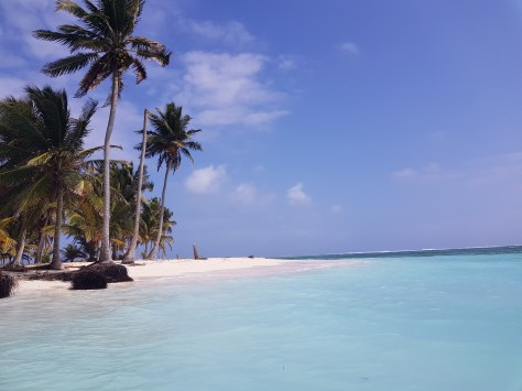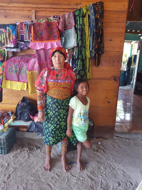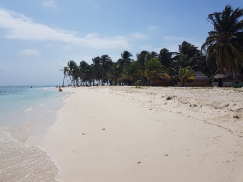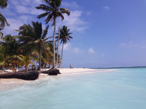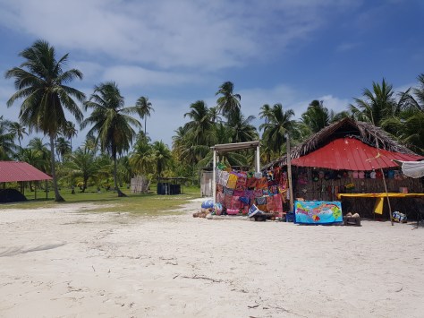 Und deshalb bekommt es auch ein eigenes Kapitel. San Blas oder auch Kuna Yala genannt, ist ein autonomes Gebiet an der Nordküste Panamas am Atlantik. Den San Blas Archipel bilden etwa 365 Inseln im karibischen Meer, von denen nur 50 bewohnt sind. Sie erstrecken sich über eine Länge von 180 Kilometern bis zur Küste Kolumbiens. Bewohnt wird Kuna Yala von rund 33.000 Angehörigen des Kuna Volkes, die der Unterwerfung trotzten und lange um ihr Gebiet kämpfen mussten. Sie haben eine eigene Sprache, einige von ihnen sprechen aber mittlerweile auch spanisch oder englisch. Es ist nur möglich mit dem Einverständnis, sprich einer Buchung über eine Agentur, auf die San Blas Inseln zu reisen. Es ist nicht möglich, mit dem eigenen Auto zum Hafen zu fahren. Man wird mit einem 4×4 Jeep im Hotel abgeholt und durch einen dichten Regenwald auf mörderischer Straße zum Hafen gebracht. Man passiert sogar eine Art Grenze, an der man den Pass zeigen muss. Wir sehen einige Jeeps am Straßenrand stehen, weil sich die Passagiere erleichtern müssen, nach oben raus…So versuchen die Guna ihre Gebiete vor dem Massentourismus zu schützen, der jedoch schon ein bisschen eingesetzt hat, schließlich geht es um Geld. Auch wenn es nicht überall danach aussieht, versuchen die Guna dennoch ihre Inseln sauber und schön zu halten. Auf unserer Insel kehrt jeden Tag der Opi das Laub und den Dreck weg. Wir sehen aber auch total vermüllte Inseln, auf denen es nicht so schön ist. Auch im Hafen von Carti ist es sehr dreckig. Auf den meisten Inseln gibt es keinen Strom oder nur aus einem Generator für ein bisschen Licht am Abend.