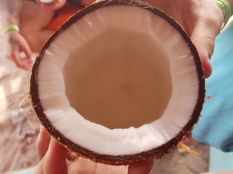 Zwischendurch bekommen wir noch eine Kokosnuss gebracht, auch die ist sehr lecker und passt zum tropischen Gefühl.