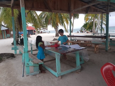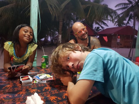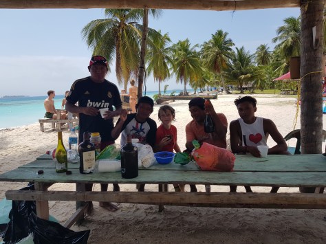Die Musik ist laut, die Leute sind total unterschiedlich und meist nett, der Liter Rum kostet 25 Dollar. Wir werden gefragt, was wir zum Mittag essen möchten. Die Auswahl ist besser, als ich vorher bei den Negativkritiken auf Tripadvisor gelesen habe. Es gibt Fischfilet, ganzen Fisch, Chicken oder Meeresfrüchte. Dazu Kokosreis, gekochte Kartoffeln, Pommes oder Kochbanane und Salat. Tip top. Wir nehmen alle Fischfilet mit Reis und Salat. Auf den heutigen Ausflug verzichten wir, wir sind müde und haben noch drei Tage dafür Zeit. Punkt 12 sitzen wir am Tisch und bekommen ziemlich leckeres Mittagessen. Die Guna Yala Familie, die unser Homestay leitet, ist meistens nett. Wir lernen Yuani kennen, die ist ein echter Sonnenschein und wir schließen sie sofort ins Herz.