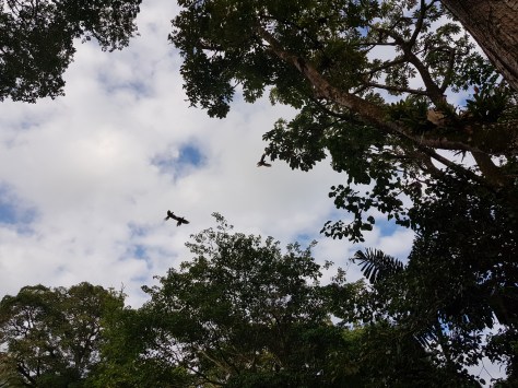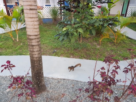So geht es weiter im Hotelgarten. Es gibt jede Menge Pfeilgiftfrösche, Vögel und Eichhörnchen. Einen Papagei gibt es auch, der wird nur leider manchmal von Balu geschnappt und sieht entsprechend zerrupft aus. Zum Glück macht er jedesmal ein Riesentheater und kann immer in letzter Sekunde gerettet werden. Natürlich hat er ein Trauma!
