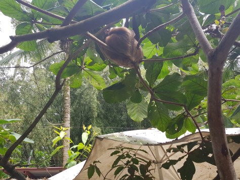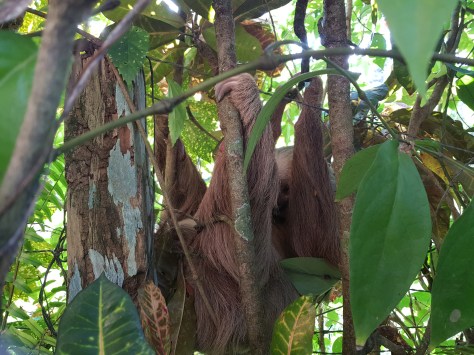 Gleich als erstes zeigt uns Nacho, der nette Mitarbeiter aus Barcelona, ein schlafendes Faultier in der Hecke.
